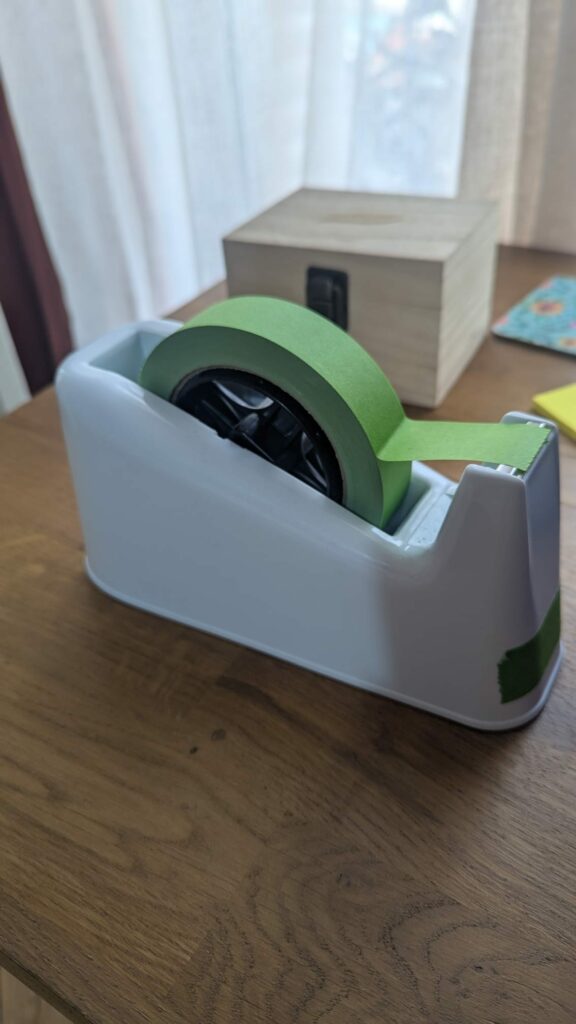Avant j’utilisais des post-its. Mais ça tombe, ça vole, ça disparaît exactement au mauvais moment. Un jour en regardant la série The Bear, j’ai vu ce scotch vert utilisé en cuisine. J’ai creusé, j’ai cherché, j’ai fini par trouver le même. Et je ne l’ai plus quitté.